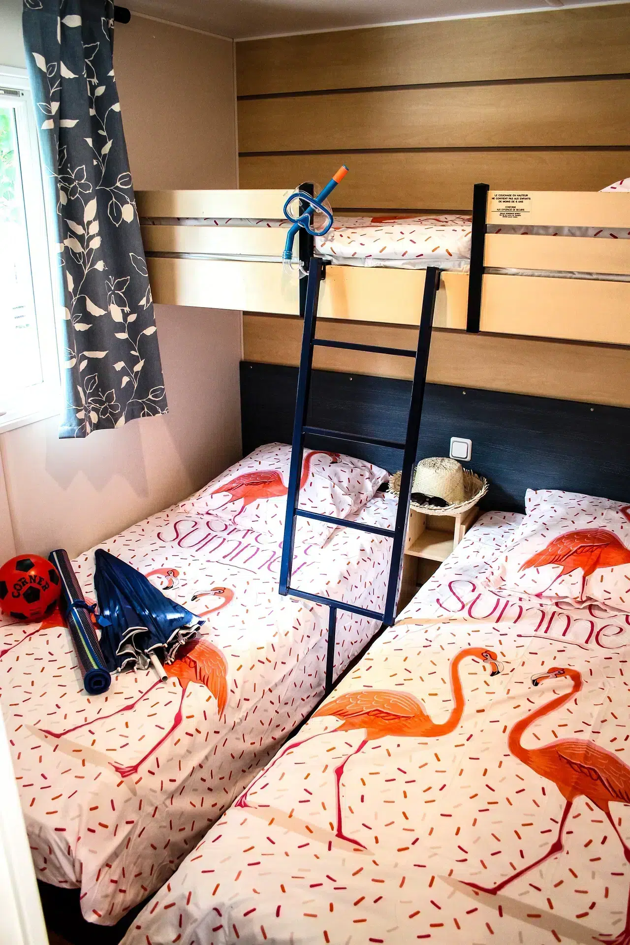 A cela s’ajoutent plusieurs mobile-homes premiums aux espaces de vie parfaitement agencés et dotés d’équipements modernes divers. Une famille nombreuses peut par exemple réserver un mobile-home de luxe comprenant quatre chambres et un canapé-lit, et pouvant accueillir jusqu’à huit personnes ; elle peut aussi se tourner vers un modèle avec deux ou trois chambres, pouvant accueillir respectivement cinq ou six personnes…