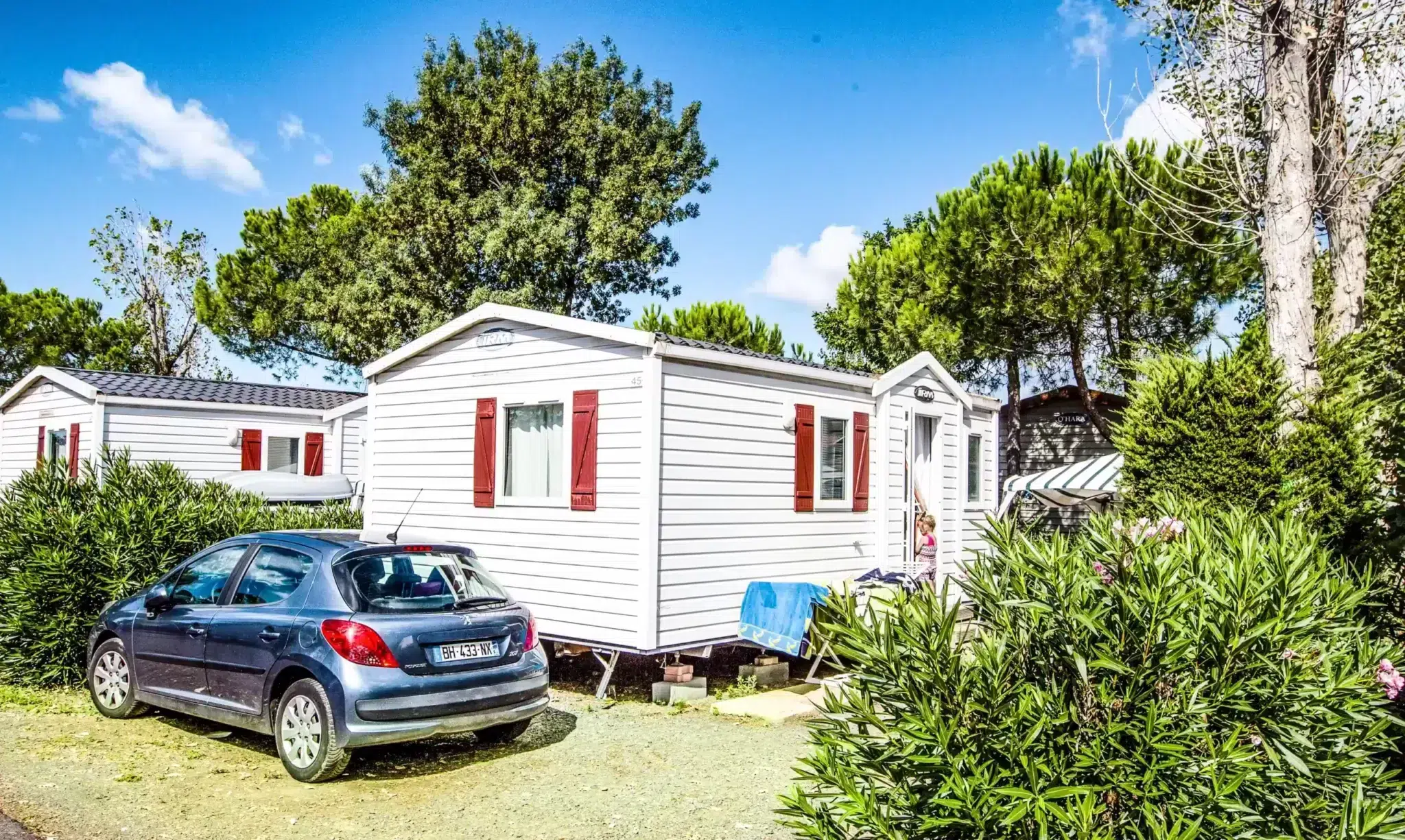 Choisissez le locatif convenant à vos envies et besoins : chalet, mobil-home avec ou sans climatisation, standard, confort, premium de luxe ou balnéo. Chacun d’entre eux est équipée d’une kitchenette aménagée du nécessaire pour élaborer ses menus pendant les vacances, de 2 à 4 chambres, d’une salle d’eau et de WC et d’un coin séjour ouvert sur une agréable terrasse rien que pour vous. Vous jouissez d’une intimité préservée grâce aux haies délimitant les emplacements, l’idéal pour profiter pleinement des extérieurs sur votre terrasse privée, agrémentée d’un petit jacuzzi pour les mobil homes balnéo.